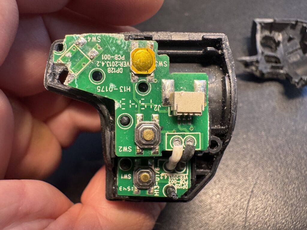 Das Zerlegen der alten, defekten Schaltereinheit ergab, dass sich im Tastaturgehäuse nur Taster und keine weitere Auswerte-oder Kommunikationselektronik befinden. Somit kann die Schaltereinheit durch eine beschaffbare andere Tastatureinheit ersetzt werden. Voraussetzung hierfür ist, dass bei der neuen auch 4 Tasten zur Verfügung stehen, idealerweise ebenfalls keine zusätzliche Elektronik verbaut ist und das Gehäuse zu öffnen ist. Die hier verwendete Tastatureinheit ist eigentlich für ein Bafang 860C LCD Farbdisplay 3,5″ für Bafang UART Systeme. Die Tastatureinheit hat 4 Tasten für die Bedienung und ist, wie das originale TranzX Bedienteil, am Lenker montierbar.