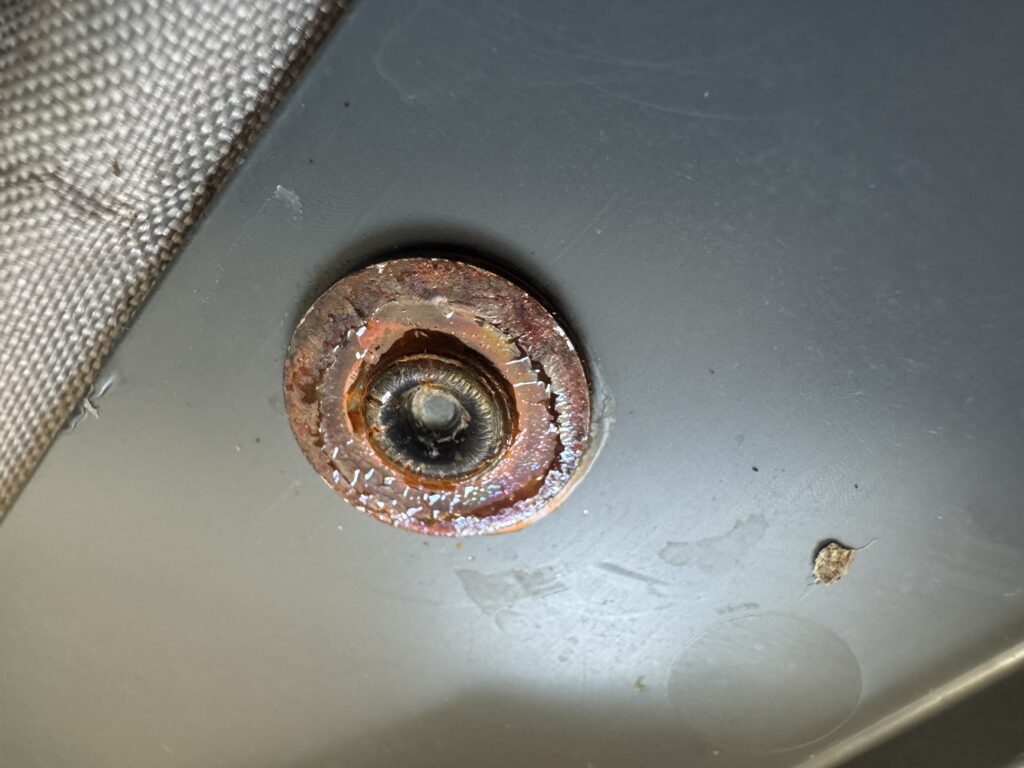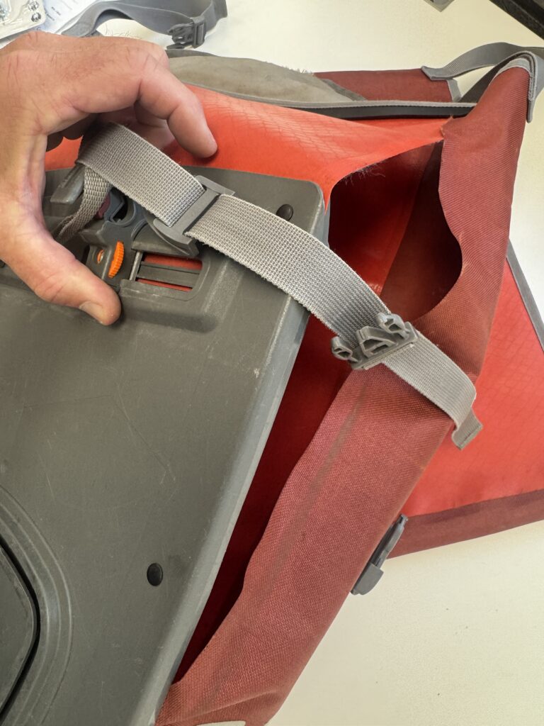 Hinweis 1: Während beim Wettbewerber die Einbauten (Befestigungsplatte etc.) geschraubt sind, ist bei diesen Gepäckträgertaschen die Befestigungsplatte mit 6 Nieten vernietet.