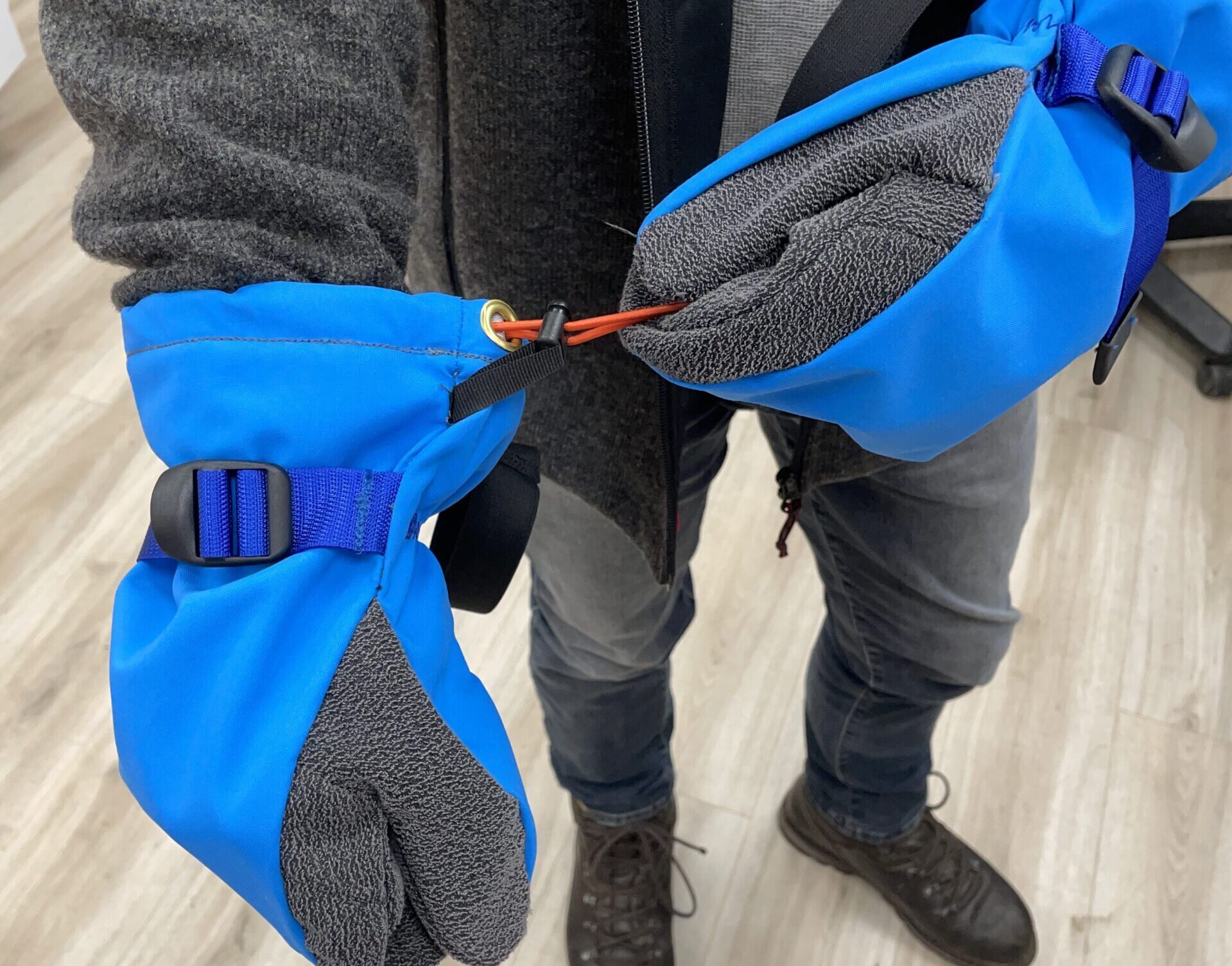Beim Radfahren bekommt ihr immer kalte Hände, weil der Wind durch eure Handschuhe zieht? Eine Lösung dafür sind Überziehhandschuhe! Wir zeigen euch, wie ihr selber eure eigenen Überziehhandschuhe nähen könnt. Die Handschuhe haben ein wasserdichtes Obermaterial und eine raue Struktur auf der Handinnenflächenseite für optimalen Grip. Schlaufen sorgen dafür, dass euch die Handschuhe nicht wegfallen können, wenn ihr sie mal kurz ausziehen müsst. Durch ein praktisches Band an den Fingerspitzen könnt ihr die Handschuhe einfach an eurem Rucksack befestigen. Mit einer Schnalle kann die Weite am Handgelenk individuell eingestellt werden. Die Handschuhe sind auch ideal zum Skifahren. Kreativität und individuelle Gestaltung sind bei der Herstellung der Handschuhe möglich.